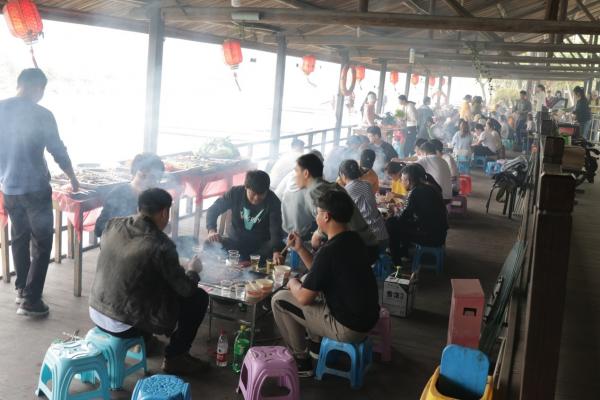 两个项目下来,小伙伴们早已是饥肠辘辘。午餐已经备妥,还是大家的“最爱”——自助烧烤。春光明媚,绿水环抱,暖阳下,美食在炭火中滋滋作响,春风里,香味在口鼻间肆意徜徉。和以往几次团建相比,春日里的烧烤别有一番风味。