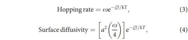 图5. 根据参考文献,各种原子扩散路径势垒的跳跃率和表面扩散长度的代表性计算。