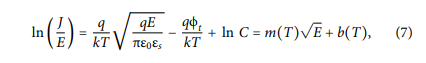 将上述方程改写后,ln(J/E)与 E1/2呈线性关系: