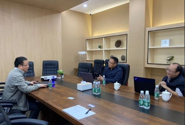 潘尧波博士、马远博士一行首先在吴亮博士等的陪同下参观了奥趋光电杭州总部办公室,对于现场的办公环境、员工风貌留下了深刻印象。随后,双方进行了亲切会谈。吴亮博士首先感谢了中电化合物半导体有限公司的来访,并向来访嘉宾详细介绍了奥趋光电的公司概况、取得的科研成果和团队技术优势,同时着重向与会嘉宾介绍了奥趋光电氮化铝单晶衬底、硅基/蓝宝石基氮化铝薄膜模板、氮化铝单晶气相沉积炉等重要产品、设备的开发进度、量产计划,并结合产品的产业化进程和市场机遇对公司未来的前进方向和发展前景进行了规划和展望。