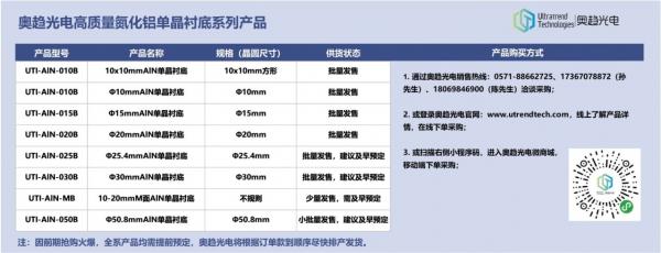 图3 奥趋光电高质量氮化铝单晶衬底系列产品