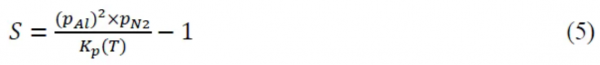 这里,PAl和PN₂分别是生长反应器中铝和氮气的分压。Kp(T)是反应(1)的平衡常数,可以通过标准热力学性质来确定,例如在JANAF表中找到的相关性质。