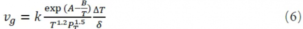 其中,k、A和B是常数,T、PT、∆T和δ分别是生长温度、总气压、源和沉积表面之间的温差和距离。