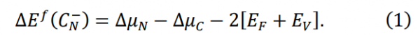 )的形成,需采用点缺陷调控技术。碳原子在晶体生长过程中的掺杂行为由缺陷形成能决定,该能量与氮(μₙ)、碳(μc)的化学势及费米能级相对价带顶的位置(EF - EV)密切相关。