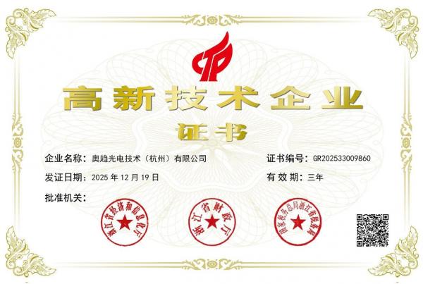 日前,奥趋光电技术(杭州)有限公司正式通过认定,获评国家高新技术企业。证书已于近日下达。